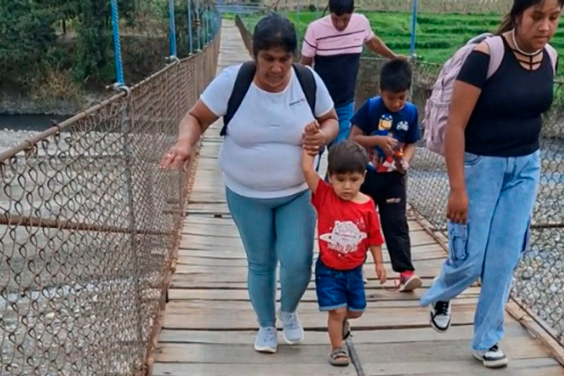 El puente es la única vía de conexión entre el caserío de Septén y la carretera Longitudinal de la Sierra, por lo que los ciudadanos tienen que arriesgarse a cruzar a diario los 210 metros de longitud.