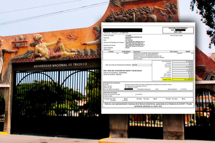 La Universidad Nacional de Trujillo (UNT) realizó un gasto de S/ 11 820 en servicio de catering para la ceremonia académica del 194° aniversario de instalación institucional, pese a las necesidades que enfrentan sus filiales universitarias.