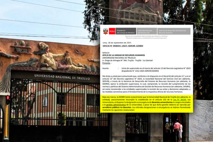 La Autoridad Nacional del Servicio Civil (SERVIR) dispuso iniciar una supervisión a la Universidad Nacional de Trujillo (UNT) luego de tomar conocimiento que se habrían designado o encargado a docentes universitarios en cargos vinculados a la gestión administrativa de la universidad.