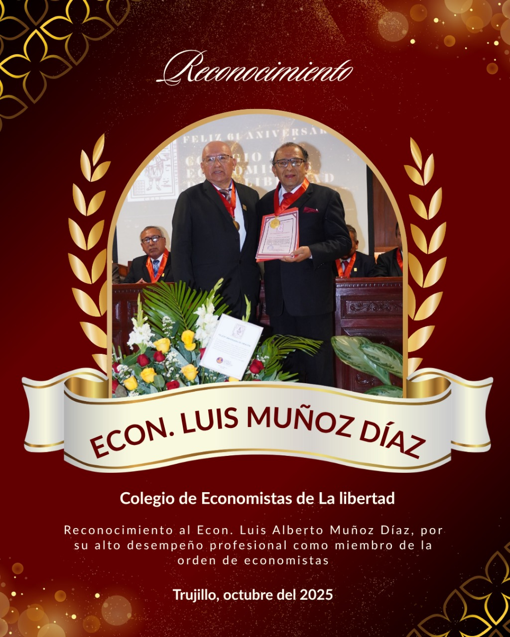 Durante la ceremonia de distinción, el decano del Colegio de Economistas de La Libertad, Francisco Huerta Benites, destacó el papel que desempeña Muñoz Díaz en el continuo fortalecimiento institucional de Caja Trujillo, así como la puesta en marcha de nuevos proyectos estratégicos que consolidan a la entidad como una de las microfinancieras más sólidas y de mayor confianza del país.