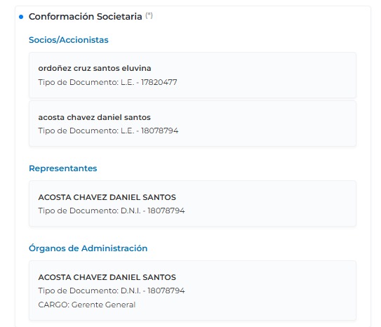 Se trata de Construcción y Servicios Sofia S.A.C., que, de acuerdo al Organismo Especializado para las Contrataciones Públicas Eficientes (OECE), tiene como accionistas a Santos Eluvina Ordoñez Cruz y Daniel Santos Acosta Chávez, quien además es el gerente general de la empresa.