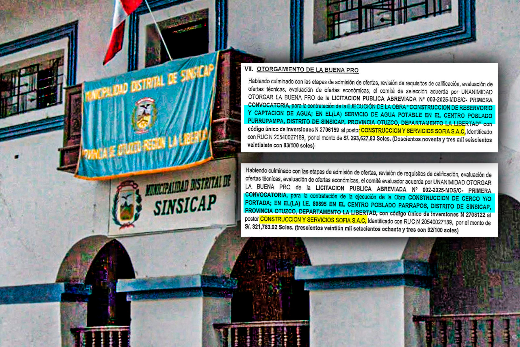 Una investigación de Macronorte.pe identificó que, en menos de tres días, una misma empresa ganó dos procesos de licitación en la Municipalidad Distrital de Sinsicap, bajo la gestión del alcalde Miguel Polo Reyes, por un monto total que supera el medio millón de soles.