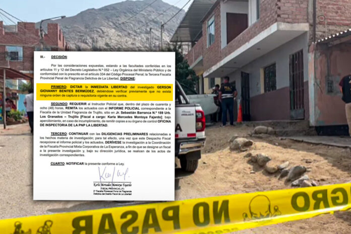 La Tercera Fiscalía Provincial Penal de Flagrancia de La Libertad dispuso la libertad del S3 PNP Gerson Giovanny Benites Bermúdez, acusado de acabar con la vida de su compañero al interior de un inmueble en el distrito de La Esperanza.