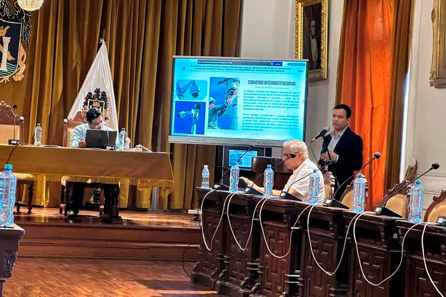 El Concejo de la Municipalidad Provincial de Trujillo (MPT) aprobó por unanimidad la suscripción de un convenio entre las municipalidades distritales de Alto Trujillo y El Porvenir, que permitirá el monitoreo de las 40 cámaras de videovigilancia instaladas en Alto Trujillo para temas preventivos de seguridad.