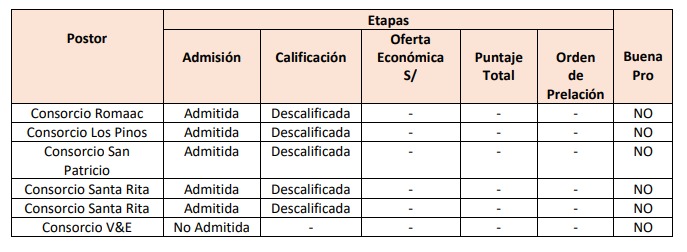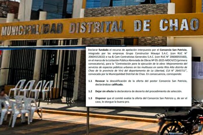 En ese sentido, el comité de Chao deberá evaluar la oferta del Consorcio San Patricio a fin de determinar si corresponde ser adjudicado con la buena pro de la citada licitación de casi de más de S/ 1.5 millones.