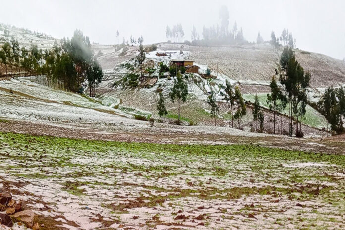 El distrito de Angasmarca, ubicado en la provincia de Santiago de Chuco, fue afectado por una fuerte granizada.