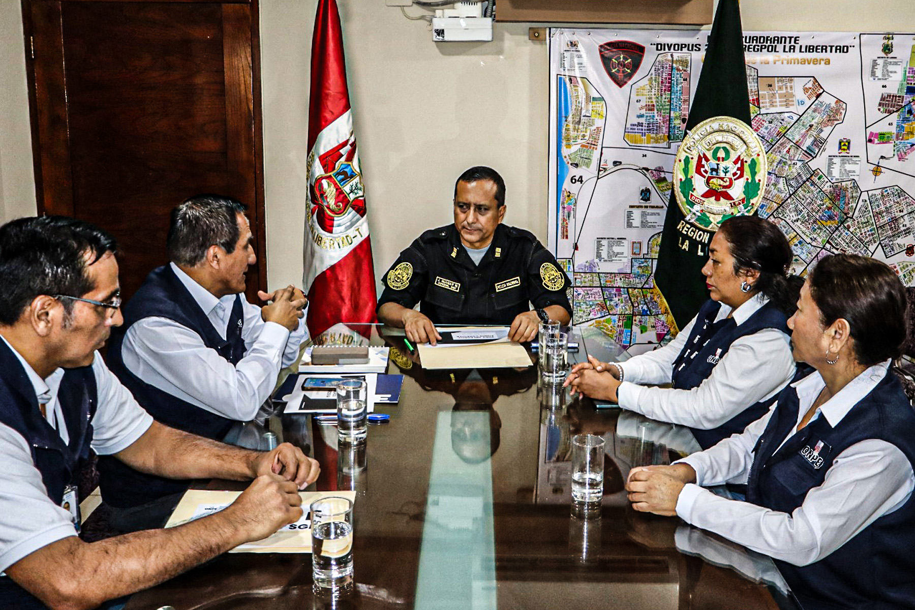 El encuentro se llevó a cabo en la sede de la División de Orden Público y Seguridad (DIVOPUS) de la Policía Nacional del Perú, ubicada en el centro histórico de la ciudad de Trujillo, y contó con la participación del jefe de la ODPE Trujillo, Yury Ponte Córdova, así como del jefe de dicha unidad policial, coronel PNP Johnny Huamán Mariano.