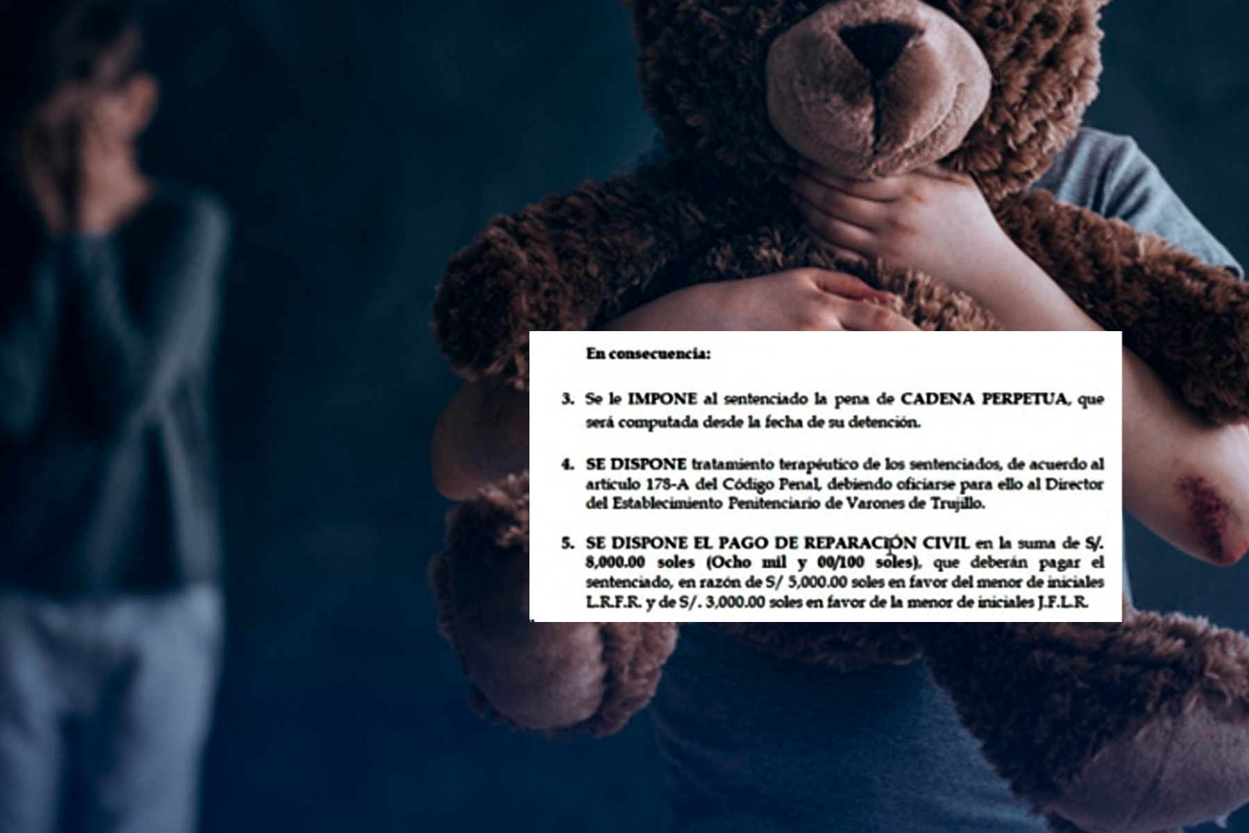 El Tercer Juzgado Penal Colegiado de Trujillo sentencio a cadena perpetua a Carlos Miguel Saavedra Quiroz, como autor del delito contra la libertad sexual en agravio de los menores de iniciales J. F. L. R. (5) y L. R. F. R. (4).
