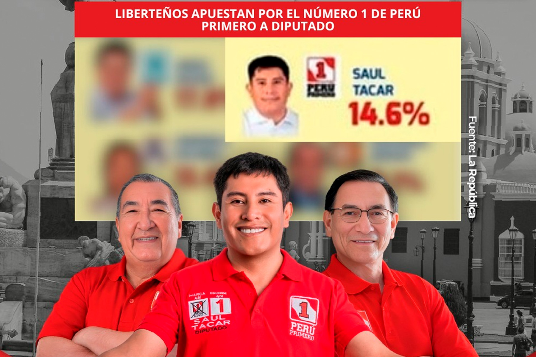 Este crecimiento se refleja en recientes mediciones de opinión realizadas el último fin de semana por Global Data Consulting E.I.R.L. y difundidas por el diario La República, donde un 14.6 % de los liberteños manifestó su preferencia por el número 1 de Perú Primero para representarlos como diputado, posicionándolo entre las principales opciones electorales, incluso por encima de organizaciones políticas tradicionales en la región.