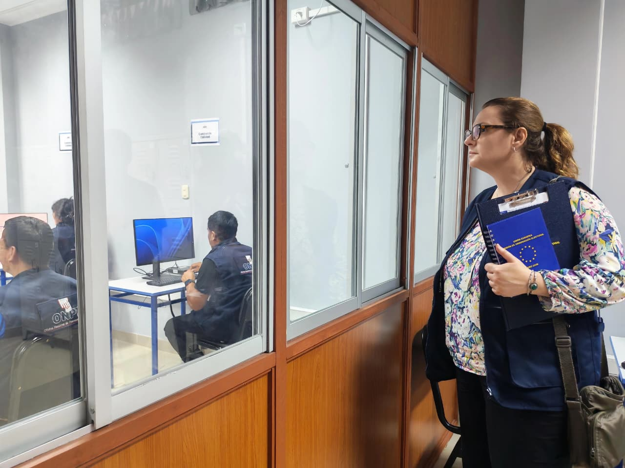 En el marco de las Elecciones Generales 2026, miembros de la Misión de Observación Electoral de la Unión Europea (UE) visitaron la sede de la Oficina Descentralizada de Procesos Electorales (ODPE) La Esperanza, donde fueron recibidos por el jefe de la oficina, Miguel Checa Bernazzi.