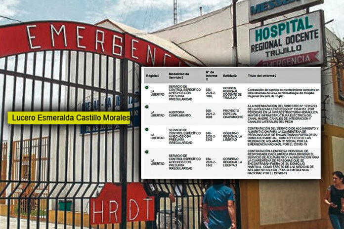 Macronorte.pe. ha corroborado que la actual Jefa de la Oficina Ejecutiva de Administración del Hospital Regional Docente de Trujillo, Lucero Esmeralda Castillo Morales, figura en 4informes de la Contraloría General de la República (CGR), publicados entre el 2020 y 2024. En todos los documentos se le atribuye presunta responsabilidad administrativa.