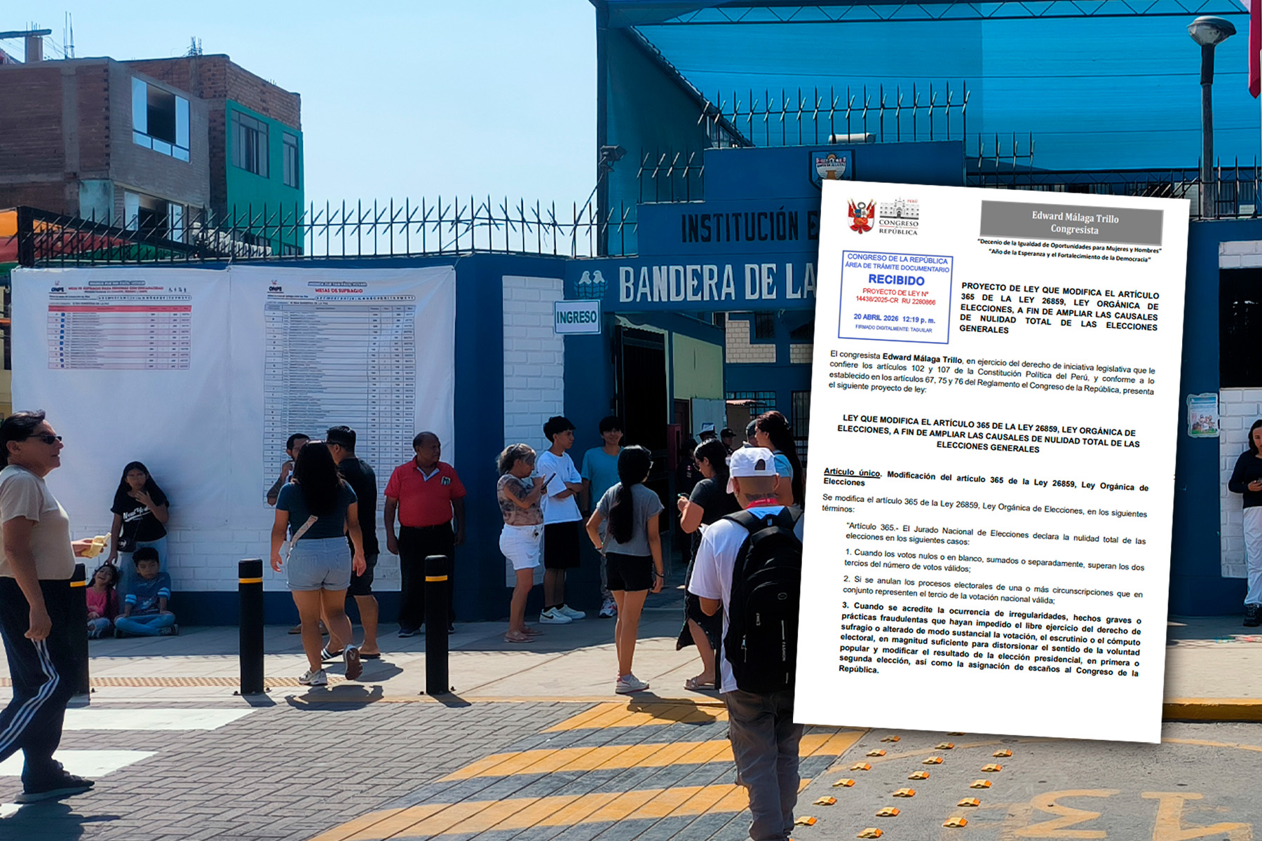 El congresista Edward Málaga Tello presentó el proyecto de Ley N°14438/2025-CR que propone que las elecciones generales puedan declararse nulas ante la ocurrencia de irregularidades.
