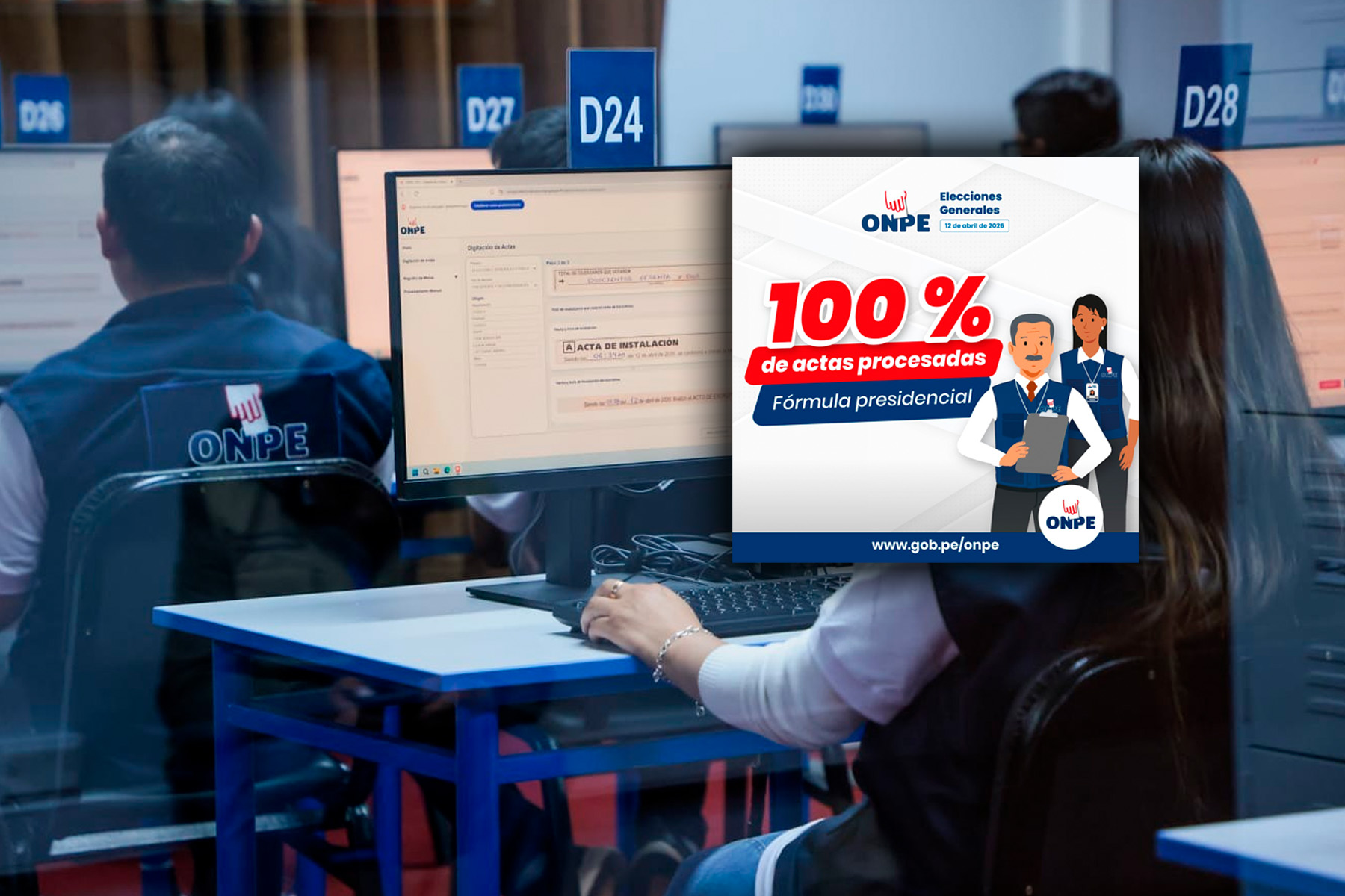 La Oficina Nacional de Procesos Electorales (ONPE) culminó este 22 de abril del 2026 el procesamiento de las actas correspondientes a la elección de fórmula presidencial, garantizando así el irrestricto respeto al veredicto de los electores emitido en las urnas, tanto en el territorio nacional como en el exterior.