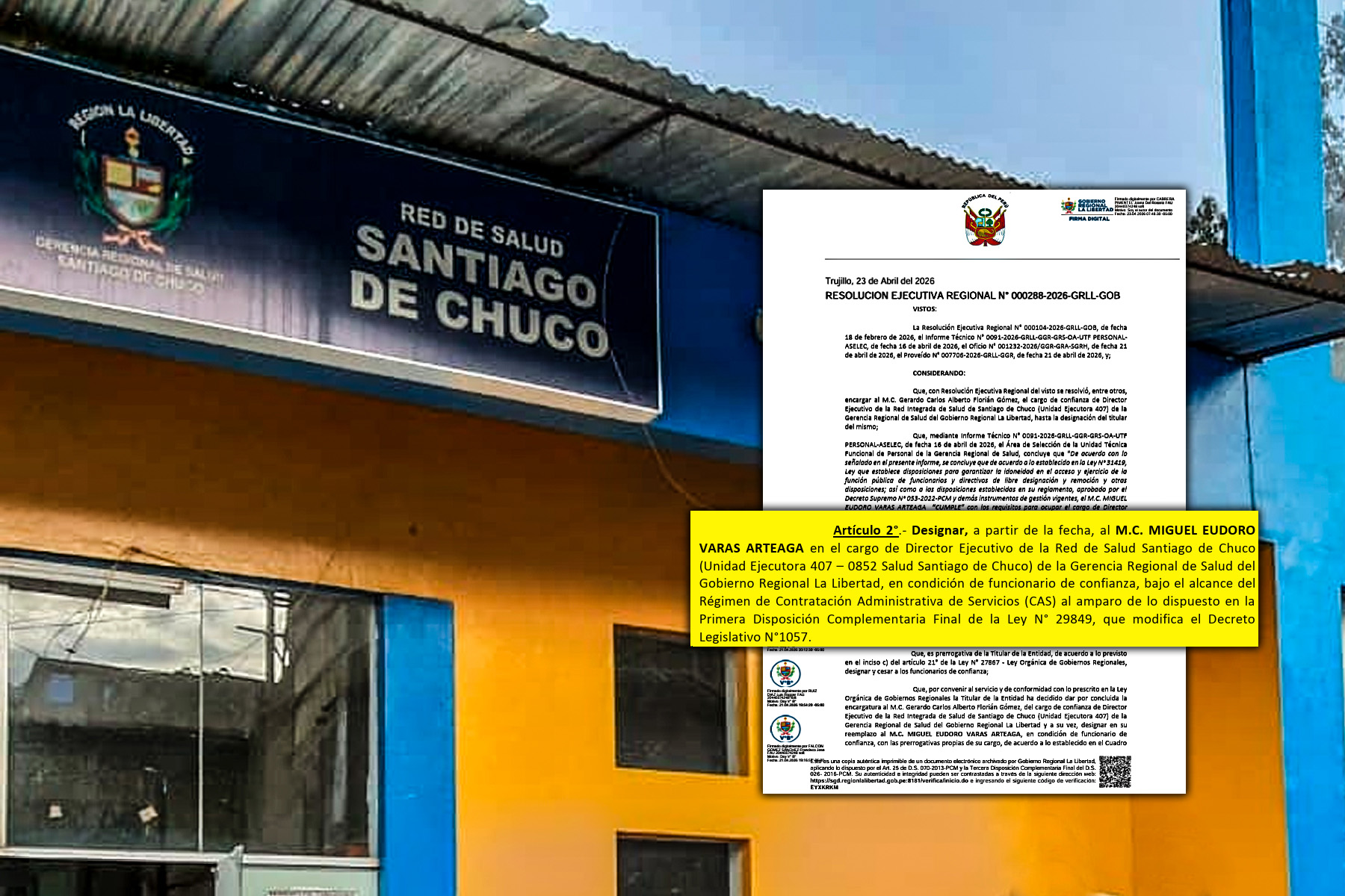 El Gobierno Regional de La Libertad designó a un nuevo director de la Red Integrada de Salud (RIS) Santiago de Chuco.