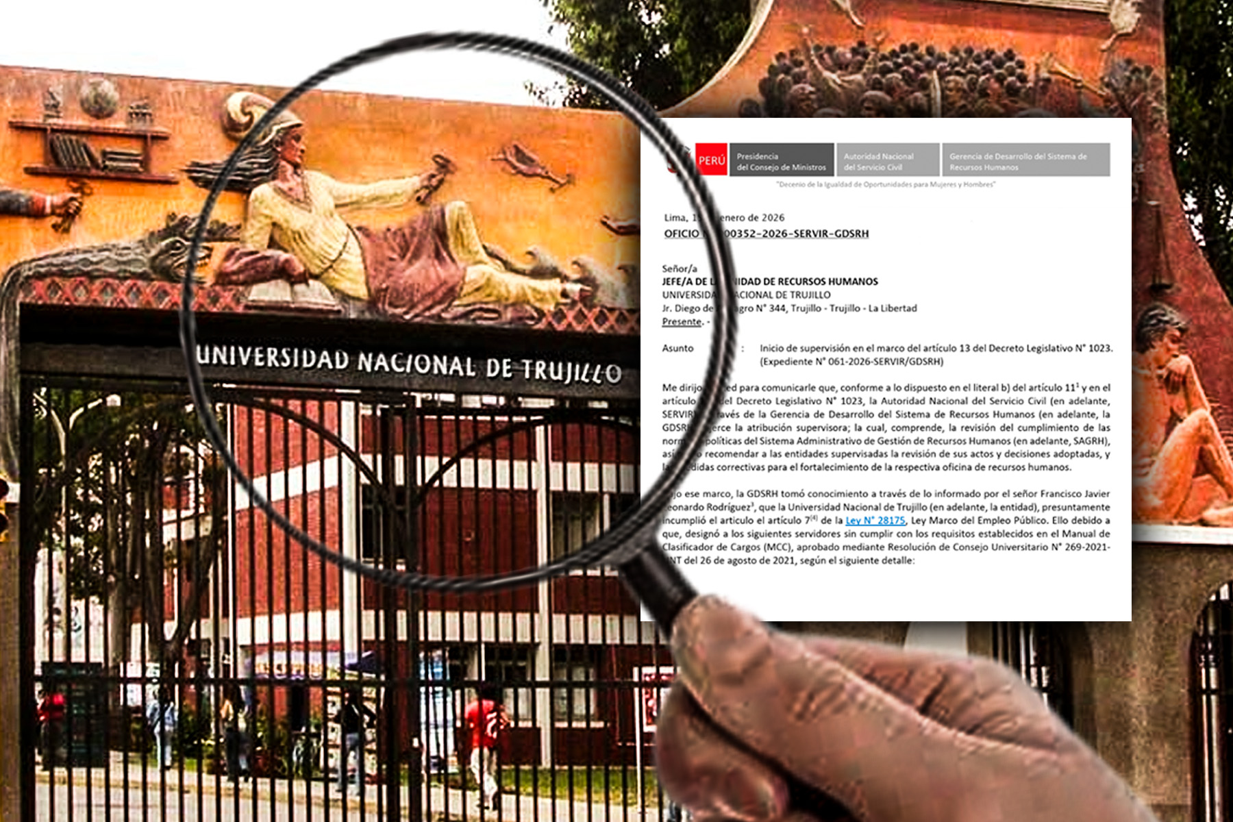 La Autoridad Nacional del Servicio Civil (SERVIR) notificó oficialmente a la Universidad Nacional de Trujillo (UNT) el inicio de un proceso de supervisión por presuntas irregularidades en la designación de ocho funcionarios en cargos directivos, quienes habrían sido nombrados sin cumplir los requisitos mínimos establecidos en el Manual de Clasificador de Cargos (MCC) aprobado por la propia institución.