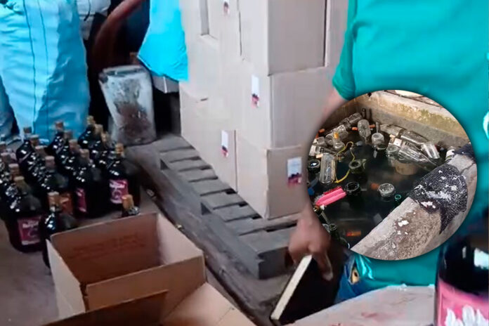 Allí se elaboran diversas bebidas alcohólicas de dudosa calidad y se encontraron gran cantidad de etiquetas de licores conocidos. El alcalde provincial Mario Reyna Rodríguez llegó hasta este lugar, manifestando su asombro y preocupación por las condiciones encontradas.